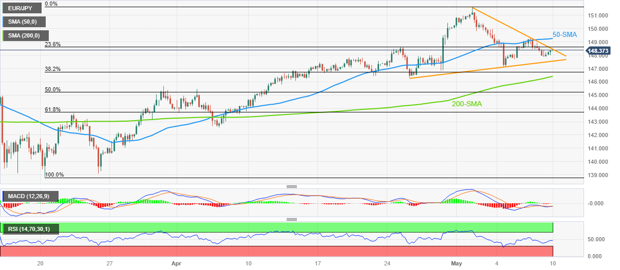 欧元/日元价格分析:构筑看涨尖旗形态,指向148.50水平
