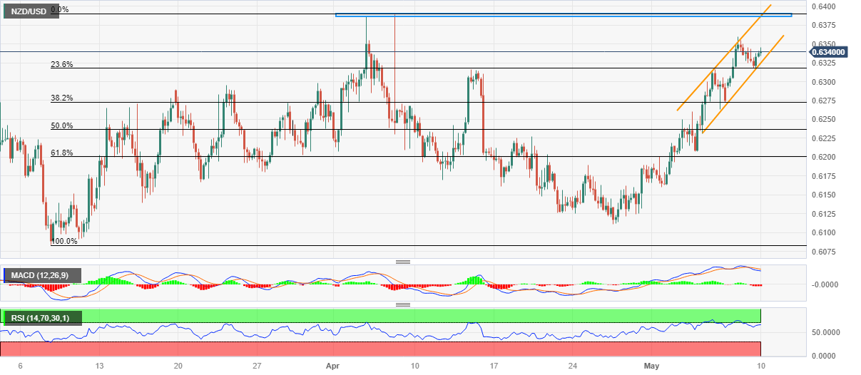 纽元/美元价格分析:小幅上涨突破0.6300,处在周线看涨通道内