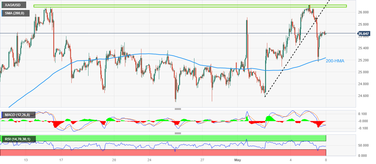 银价价格分析:自200小时移动均线反弹的势头回落,遇阻26.00美元