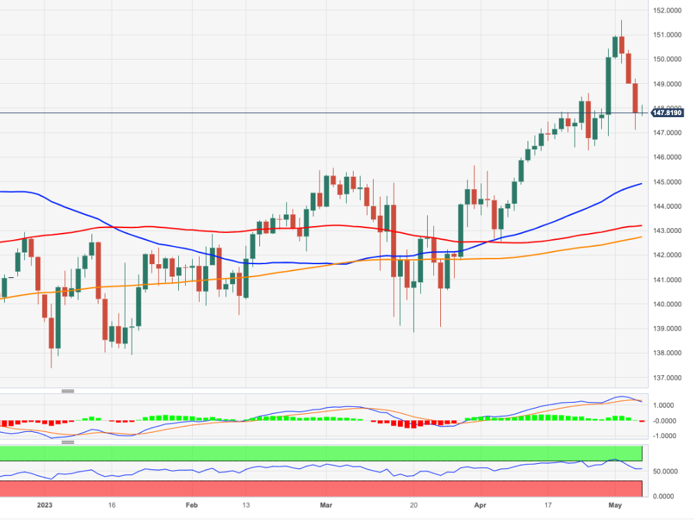 本周到目前为止,欧元/日元似乎在147.00区域附近遇到了一些初步的支持(5月4日的低点)。 过去几个交易日出现的强劲下行似乎已经削弱了看涨前景。在此背景下,正在进行的修正有可能延伸到周低点146.