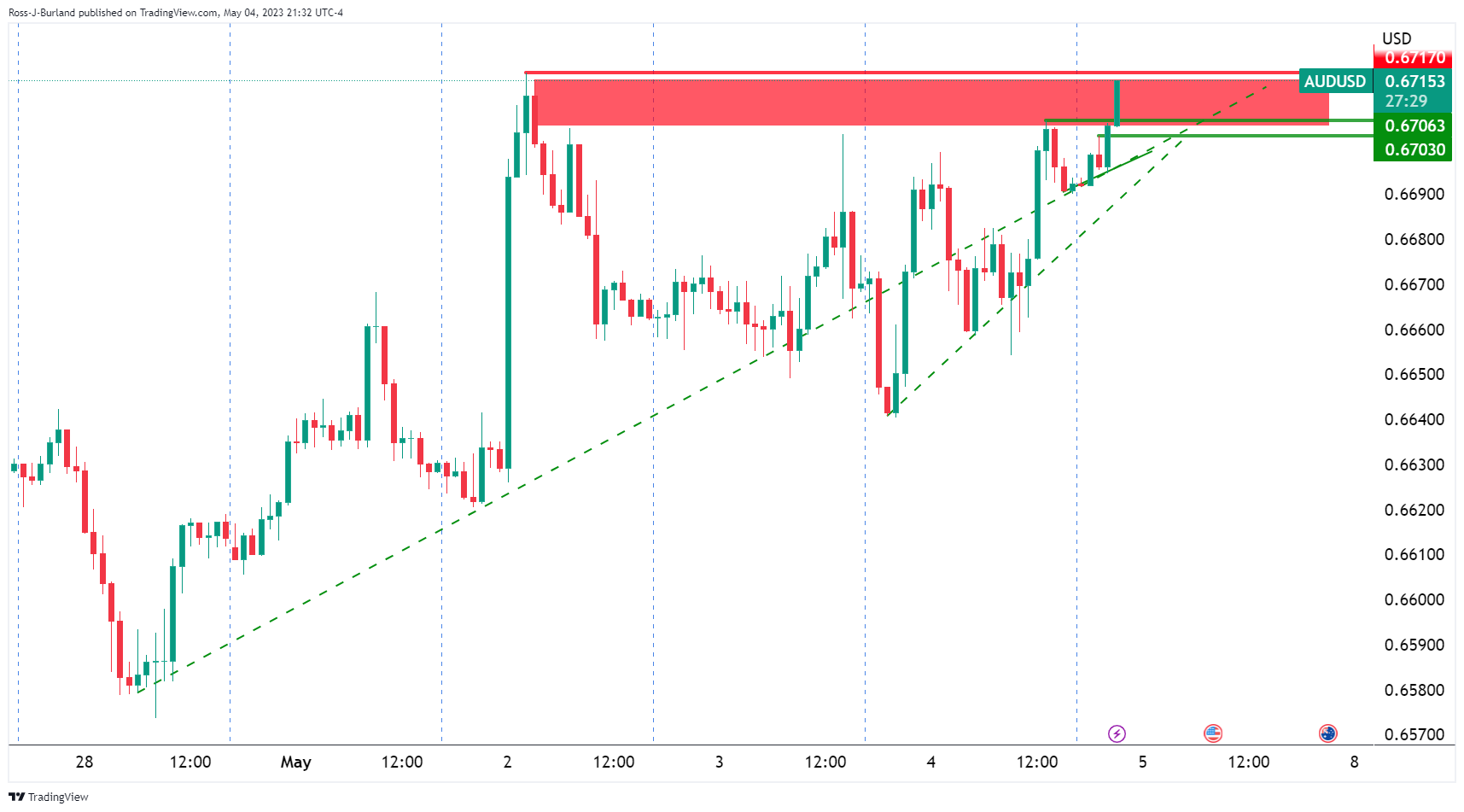 继澳储行公布鹰派会议纪要后,澳元/美元明确突破0.6700,美国非农成为焦点
