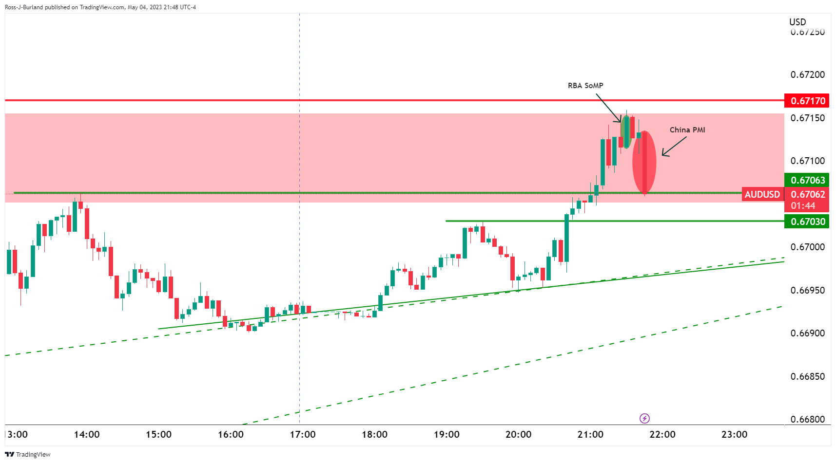 中国财新服务业采购经理人指数录得56.4,期值57,前值57.8;澳元回落