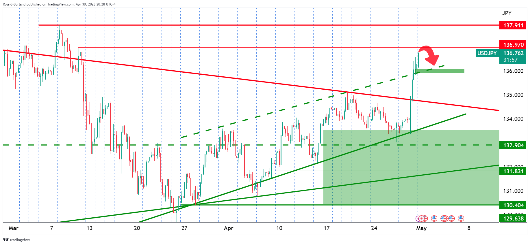 突发:美元/日元大幅反弹接近新高,指向137.00水平