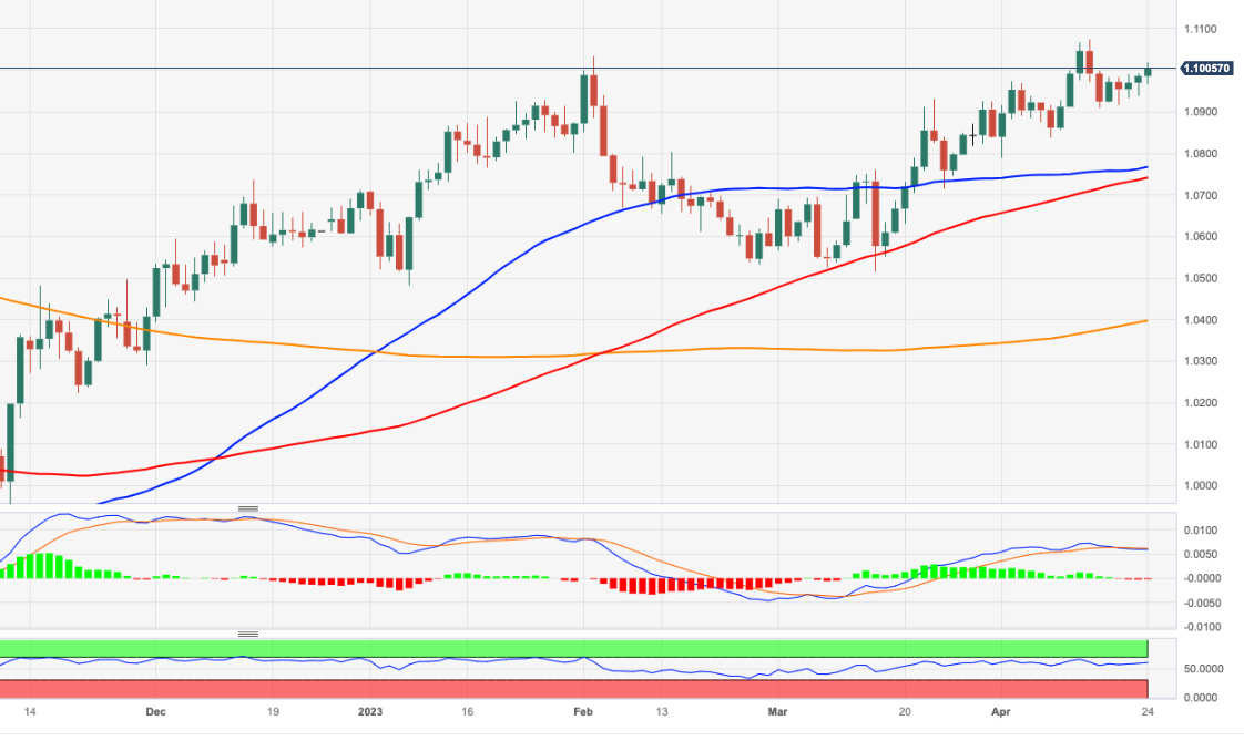 欧元/美元在本周初将看涨情绪延伸到关键的1.1000关口上方。 至少在短期内,欧元/美元看起来准备进一步扩大反弹。也就是说,初步阻力预计是2023年高点1.1075(4月14日),其次是1.1100