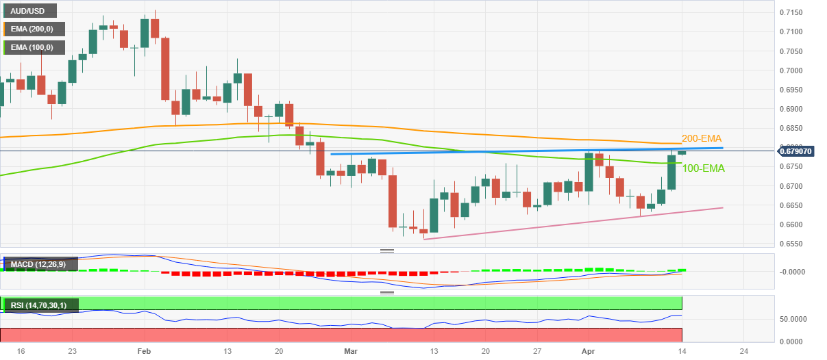 周五早盘,澳元/美元前日创下七周以来最高水平后温和上涨,一度触及高位0.6780-90。在这期间,澳元/美元连续四日上涨,验证MACD指标的看涨信号。 然而,3月初以来的上行倾向阻力0.6800整数