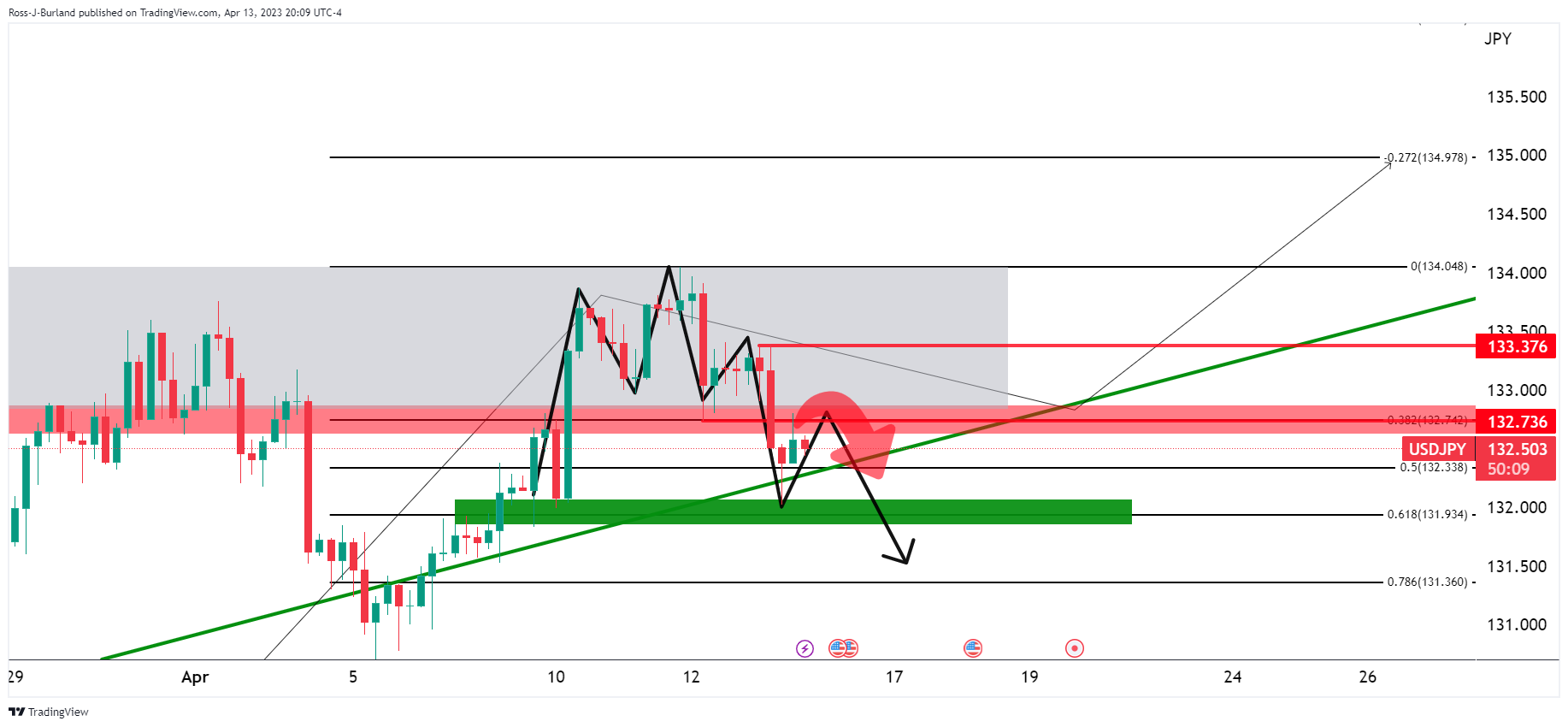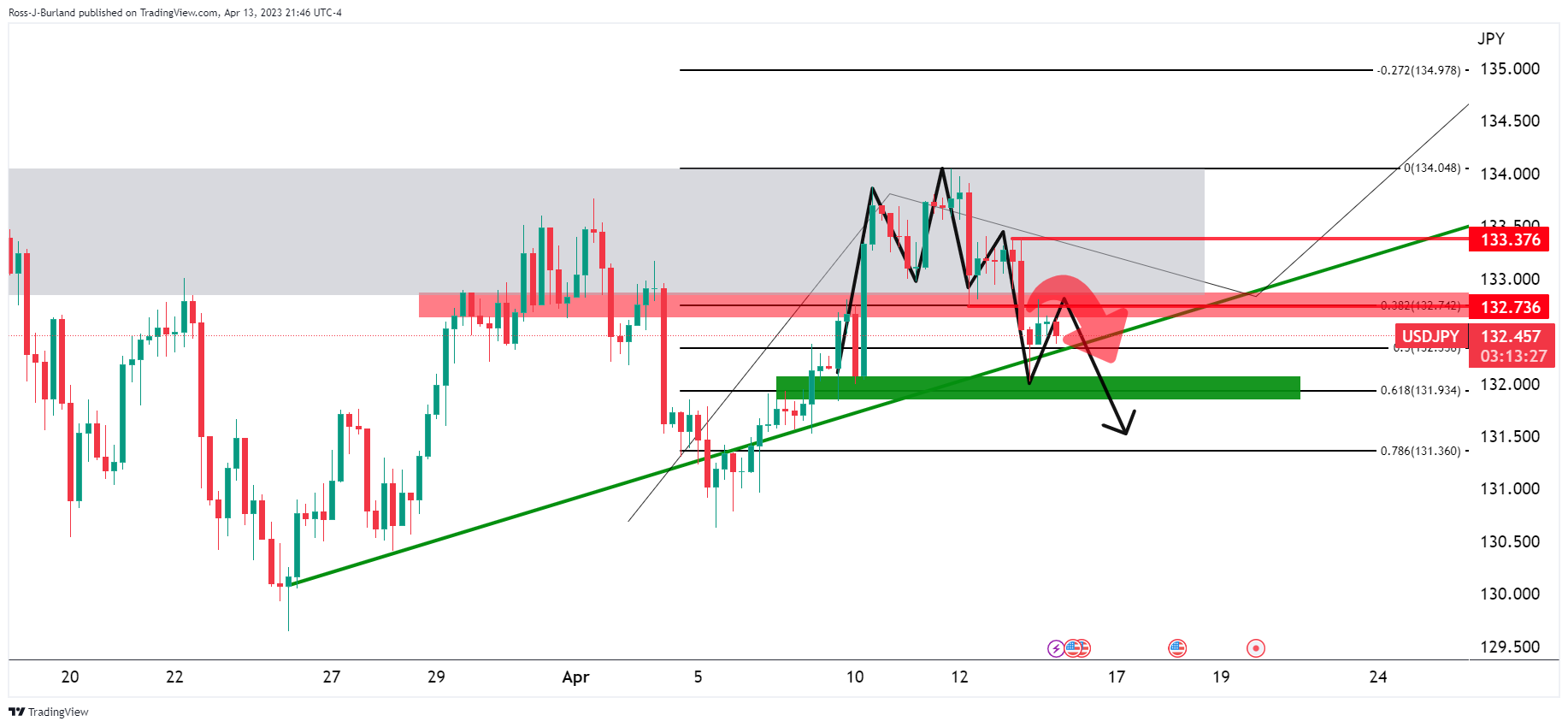 周五亚市开盘到目前为止,美元/日元盘中表现平平,美元/日元遇阻4小时图关键阻力132.70附近。本周公布的经济数据使得市场认为美联储继5月最后一次加息后确实会暂停紧缩政策,因此美元承压。 主要焦点是