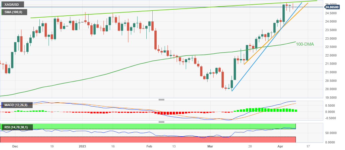 周二亚市早盘,银价继周一回调后整理于24.80-85美元附近。即便如此,银价震荡于上周走出的2022年4月下旬以来的最高水平附近。 也就是说,随着相对强度指标(14)转为超买,MACD信号也回落于看