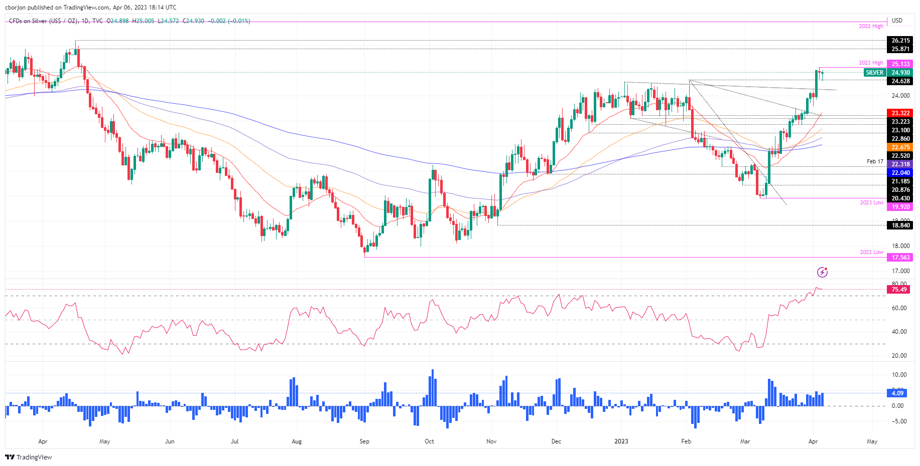 中国国家外汇管理局(SAFE)局长潘功胜周五表示,中国“将抵御外部金融市场冲击和风险。” 潘功胜说,中国“将维护外汇市场稳定运行和健康秩序。”白银价格分析:白银跟随期权市场信号第四周上涨,处在25.00美元附近