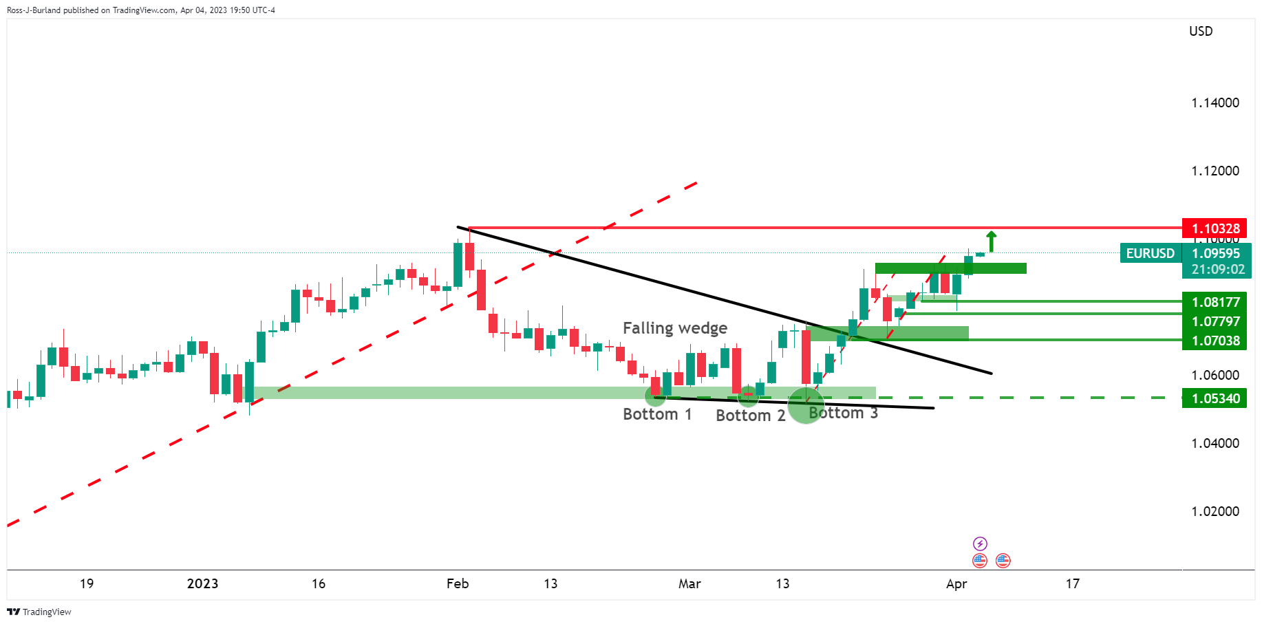 欧元/美元价格分析:多头维持占主导,指向1.1050水平