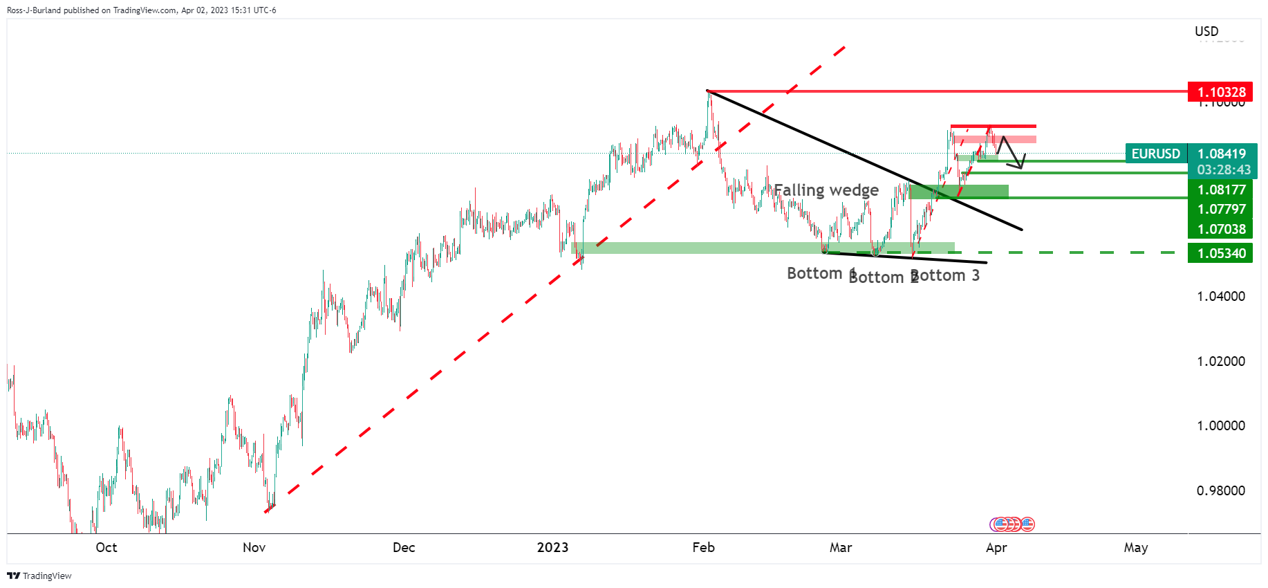 欧元/美元价格分析:空头正蛰伏于关键趋势线支撑下方