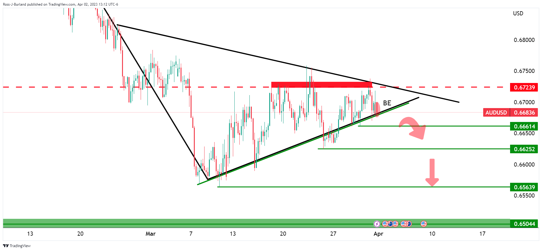 财新中国制造业PMI已经公布,具体数据如下: 50,期值51.7,前值51.6。 澳元/美元最新波动 在开盘前的分析中提出:“最后一根4小时K线走出看跌吞噬K线(BE),可能是开盘后澳元/
