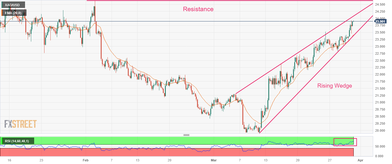 亚市早盘银价大幅上涨接近24.00美元整数关阻力位。在美元指数(DXY)疲软的情况下,银价录得三连涨,预计将继续其上行势头。 尽管市场对美国银行业潜在动荡的担忧减弱,但银价仍处于积极的轨道上。前期,