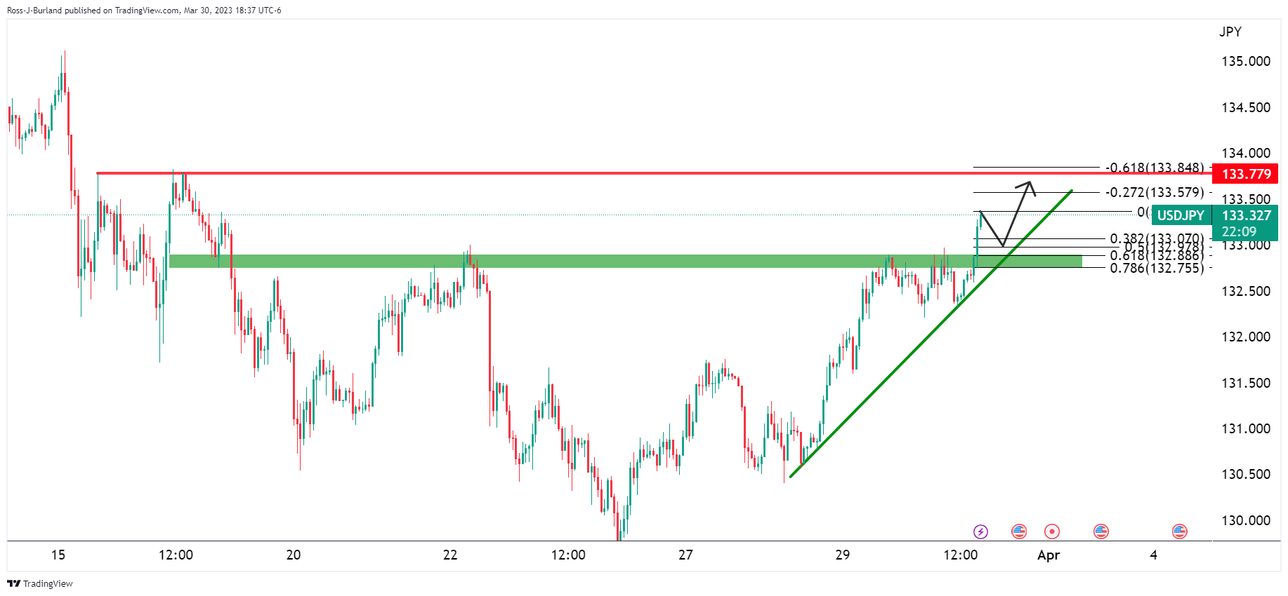 根据前期分析,美元/日元价格分析:空头需要在133关口走强,否则将失去主导,多头已经出手,价格在133关口附近刷新周期高点。截至发稿时,美元/日元上涨0.5%,迄今已创下高点133.36。 一系列的澳大利亚总理阿尔巴内塞:乐见和通货膨胀相匹配的最低工资出现上涨