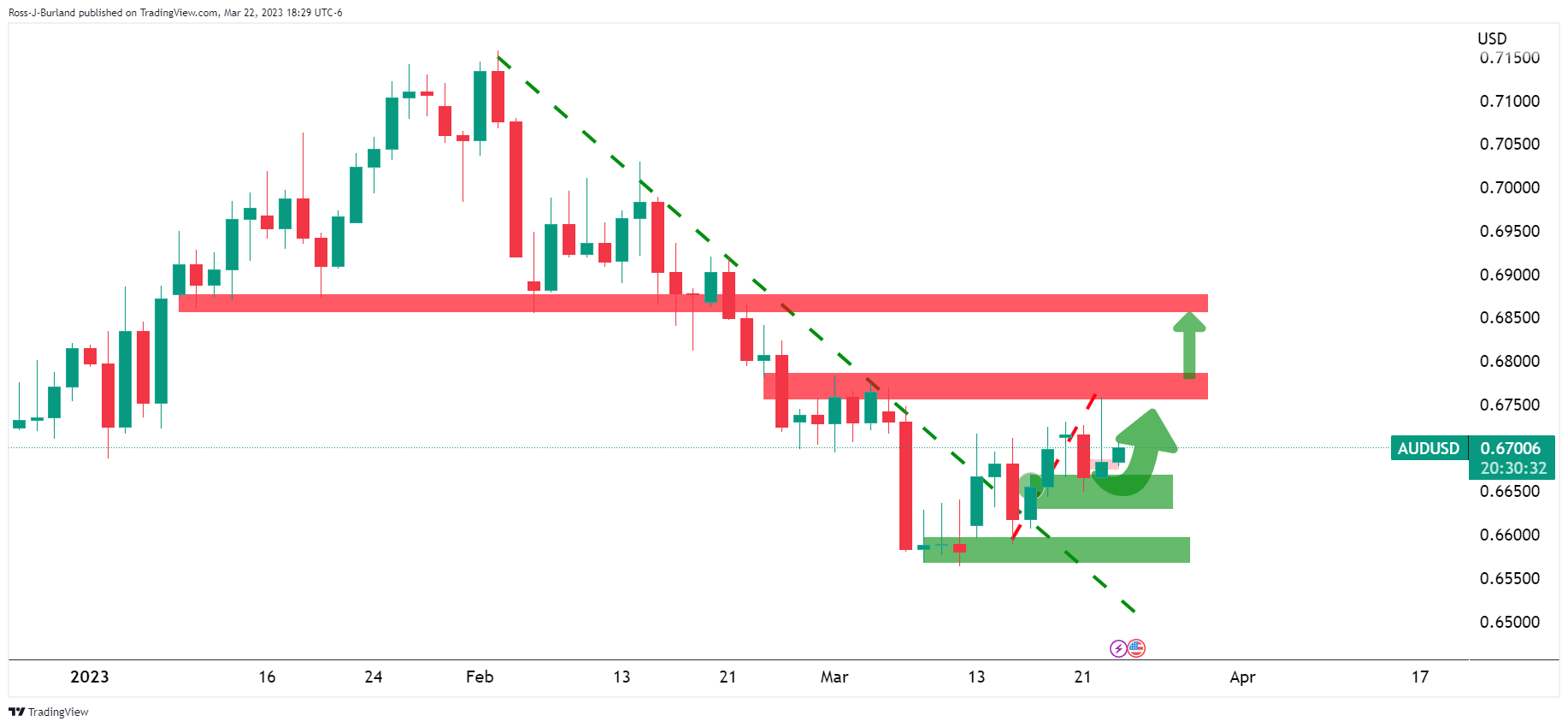 澳元/美元多头正测试处在0.6700附近的关键阻力