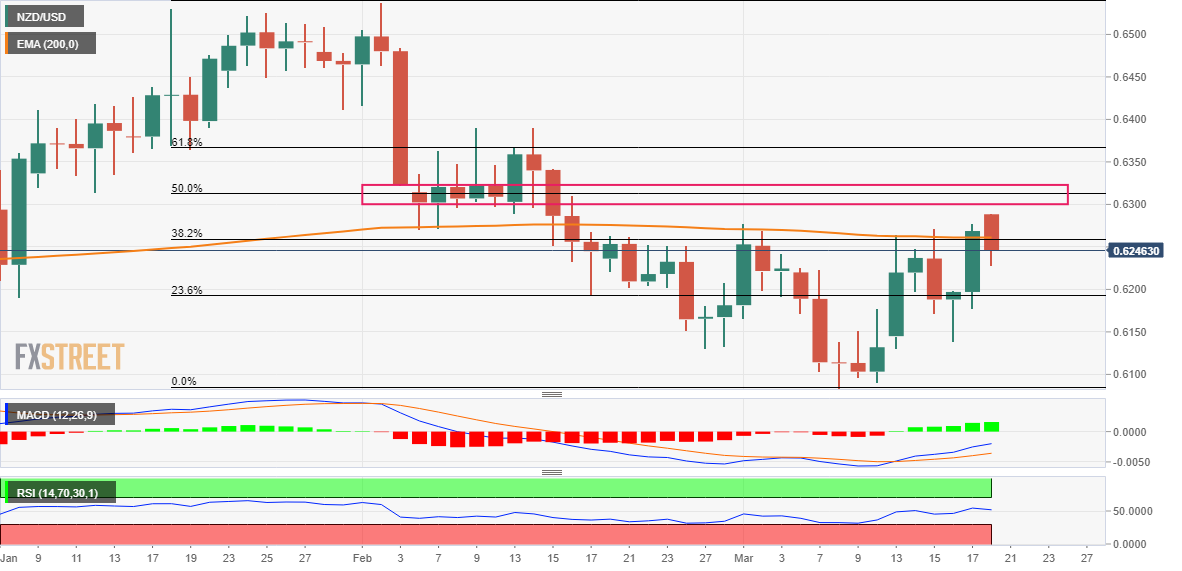 纽元/美元价格分析:多头难以在38.2%的斐波那契水平/200日均线上方被接受