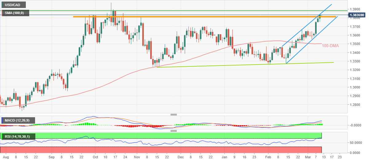 美元/加元价格分析:多头触及1.3800上方阻力,位于上升通道内
