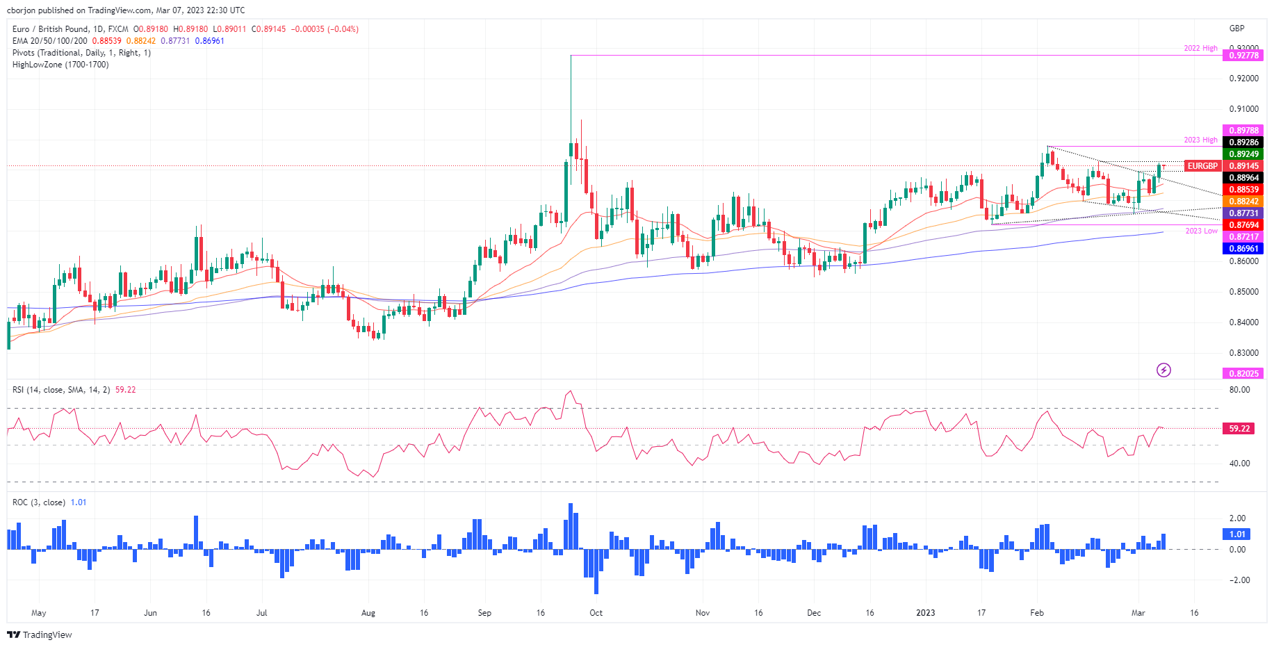 美元/日元跟随美元指数(衡量美元兑包括日元在内的一篮子货币的指数)上涨,自104.43开始上涨,一直上涨到105.435。 美联储主席鲍威尔表示,美联储将坚持到底,直到控制通胀的任务实现。然而,美联
