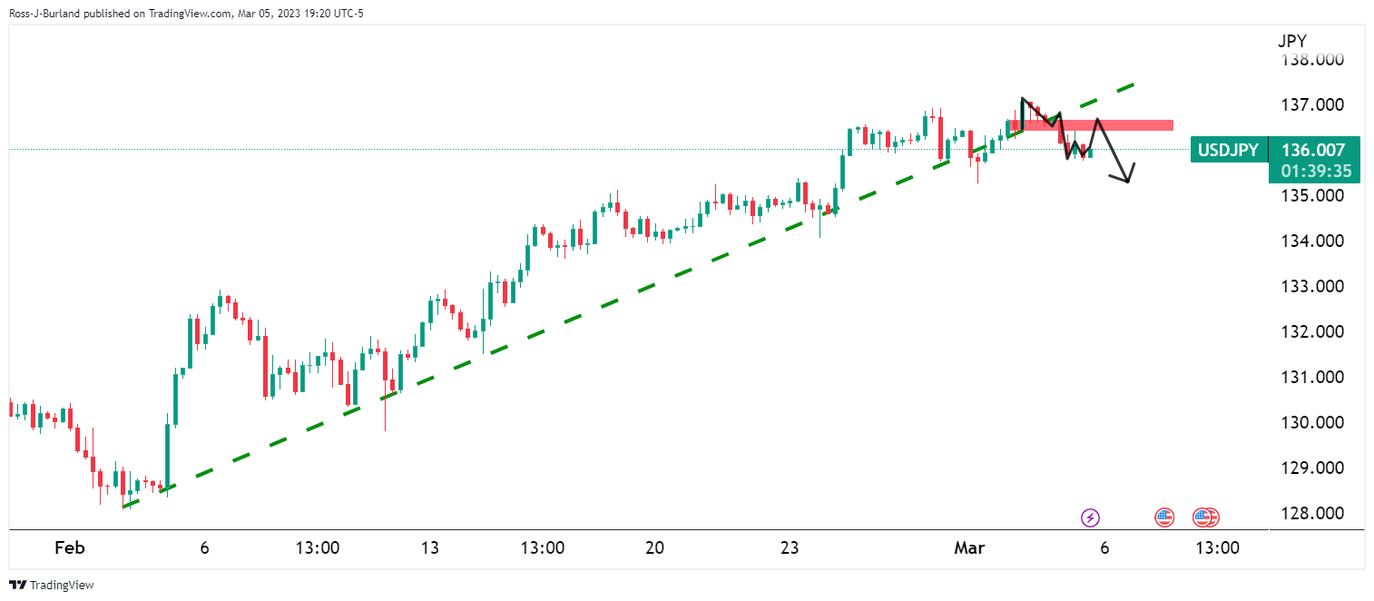 美元/日元价格分析:空头占主导,遇阻136.50水平