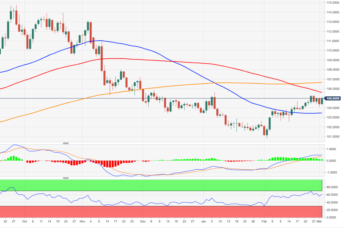 美元指数强势上扬,突破105.00大关。 接下来上行目标是2023年的高点105.30附近。 美元指数恢复了本周的上行势头,并重新夺回了105.00关口及上方水平,迅速摆脱了周三的显著回调。 美元