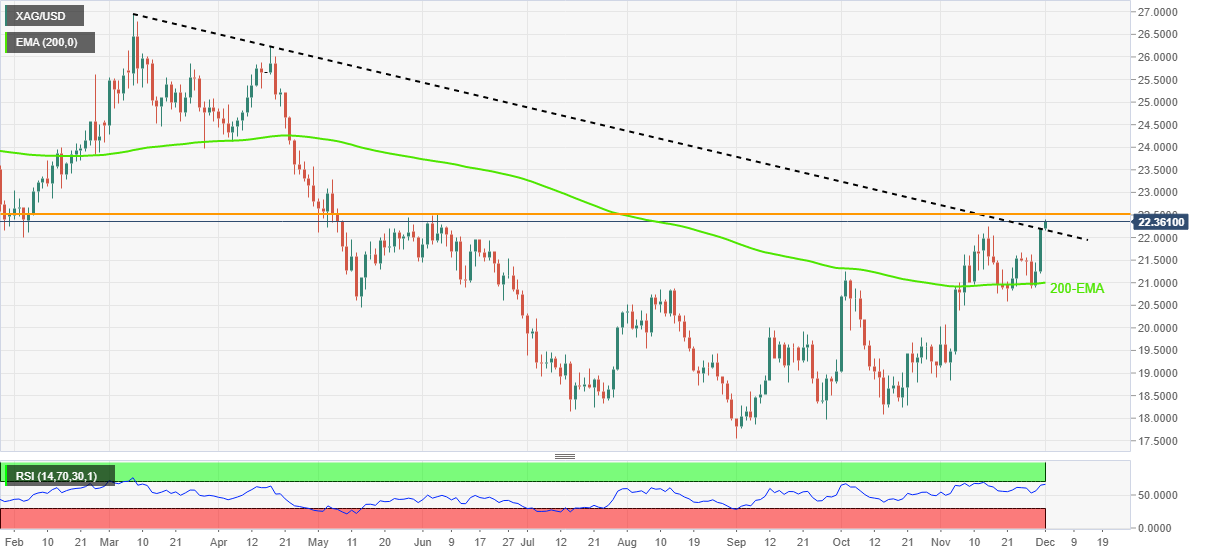 周四亚市早盘,银价刷新六个月来的高点22.40美元附近,此前银价突破3月以来的关键阻力。 银价继前日创下三周以来的最大单日涨幅后,自200日指数移动均线持续反弹。 然而,相对强弱指标近于超买处在1