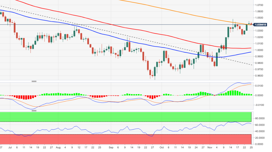 欧元兑美元面临压力,并回到1.0400下方区域。 短线上行目标是11月的峰值1.0481。 欧元兑美元面临一些抛售压力,并在本周末回落至1.0400关口下方区域。 需要今天收盘价高于200日移动均
