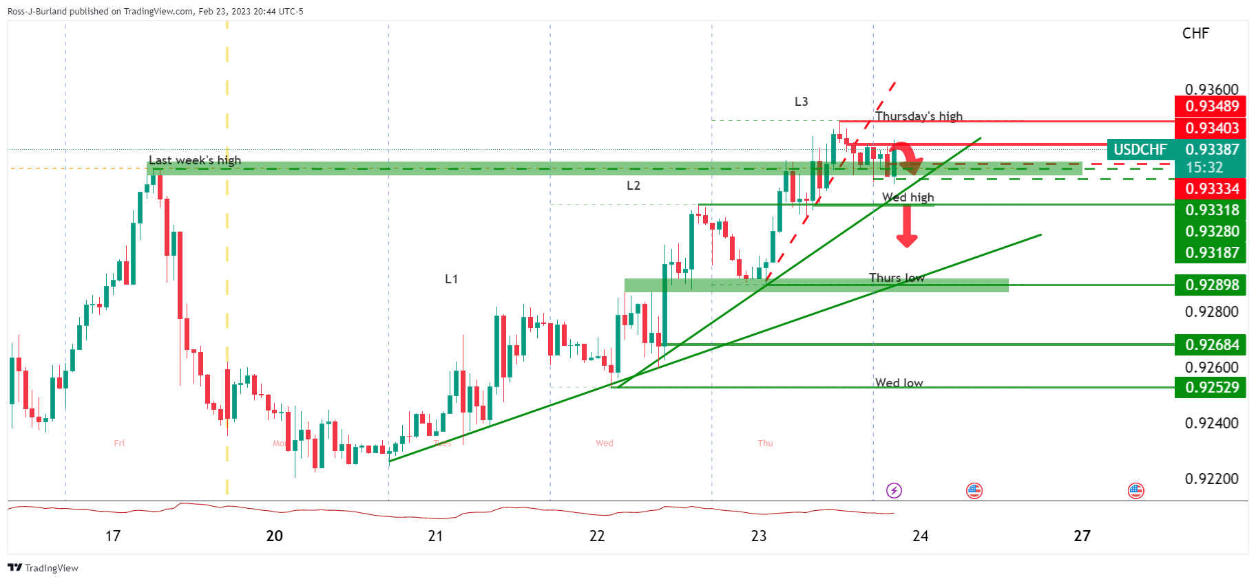 美元/瑞郎价格分析:空头寻求下行突破,将依次测试0.9320和0.9290