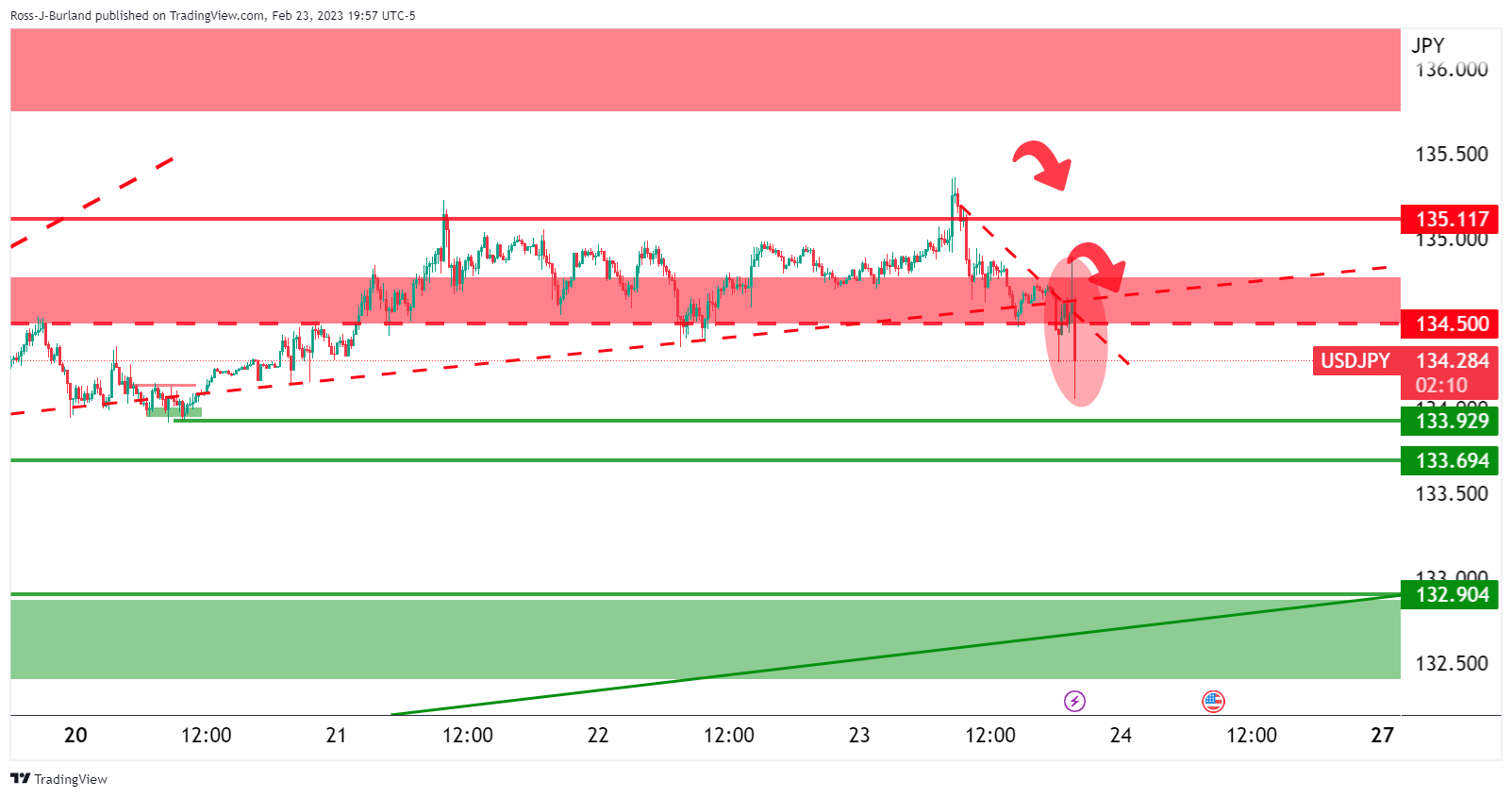 突发:美元/日元急跌至时段低位,将测试134关口