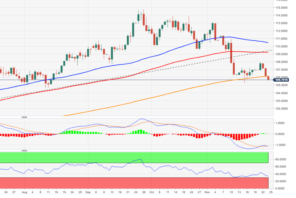 该指数屈服于抛售压力,跌破106.00。 进一步回调打开了通往105.30附近11月低点的大门。 美元指数在本周下半周保持了良好的下行趋势,此次跌至106.00支撑位下方。 如果抛售压力加速,美元