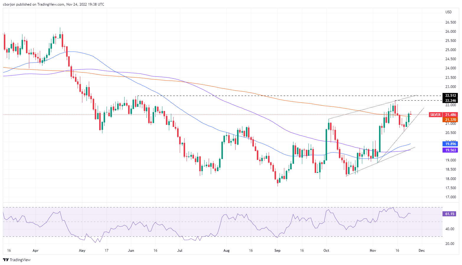 银价价格分析:继触及周线新高后出现回调,处在21.60美元附近