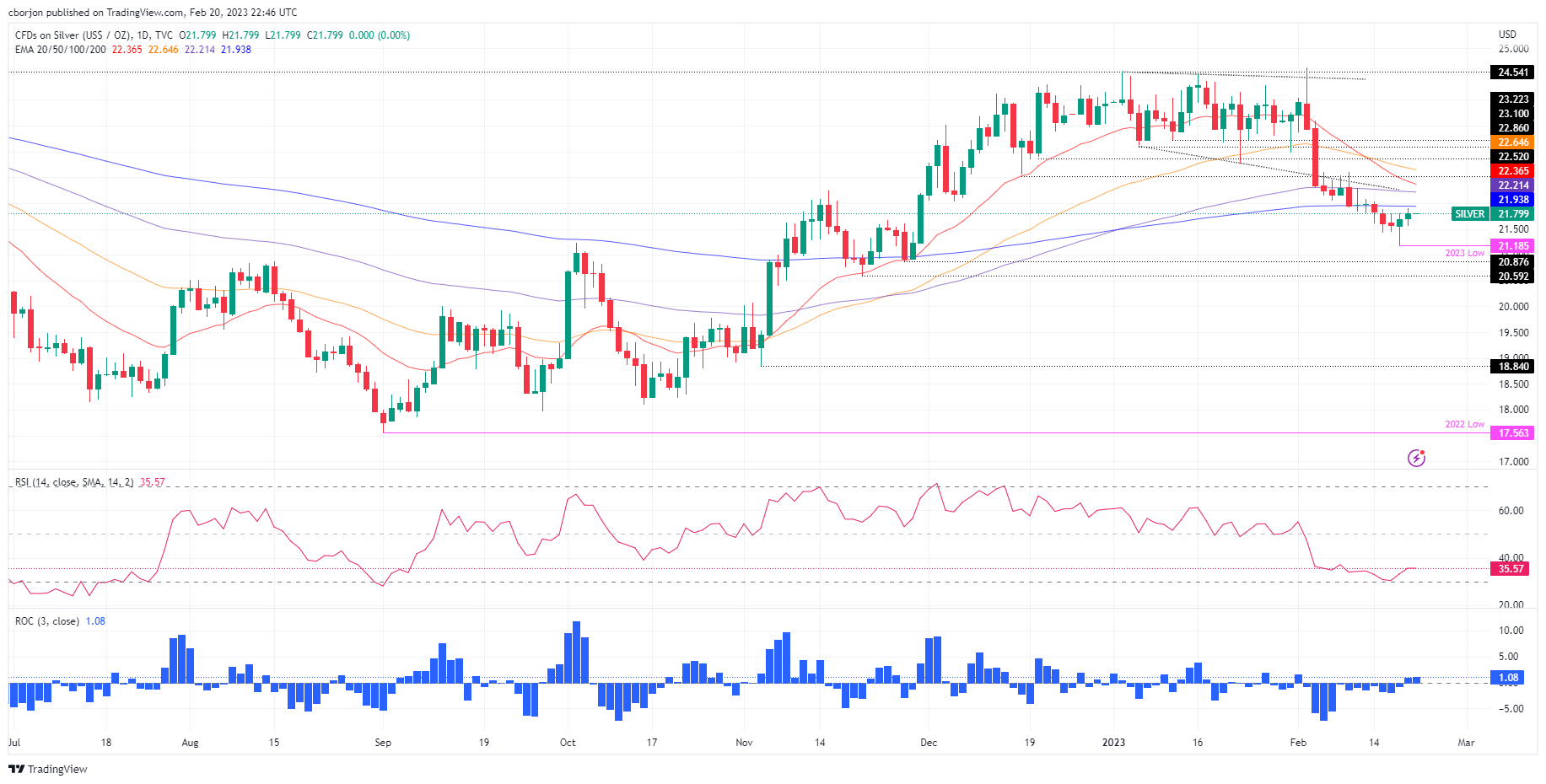 银价价格分析:上涨遇阻200日均线,回落至21.80美元下方