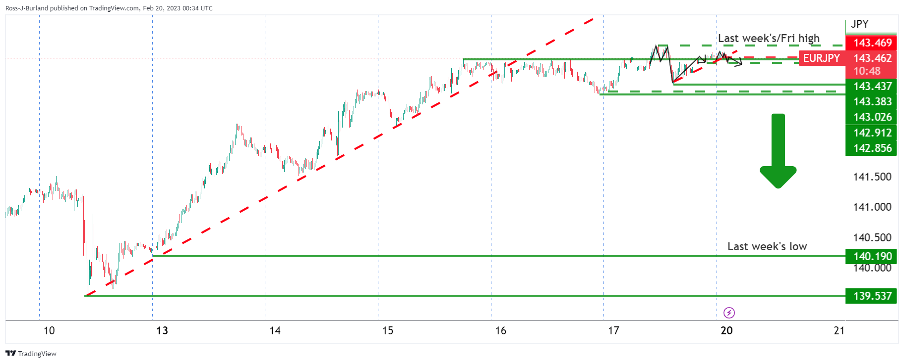 欧元/日元价格分析:空头正寻求突袭143.70附近下方