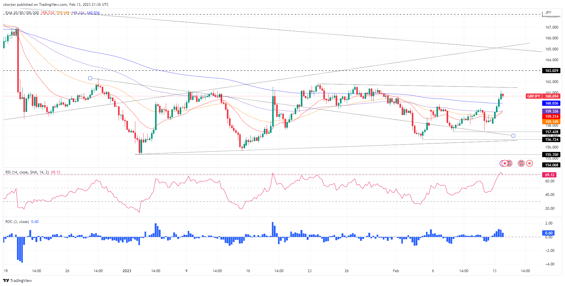 英镑/日元价格分析:挣扎于50日均线附近,同时夯实160.70附近的涨势