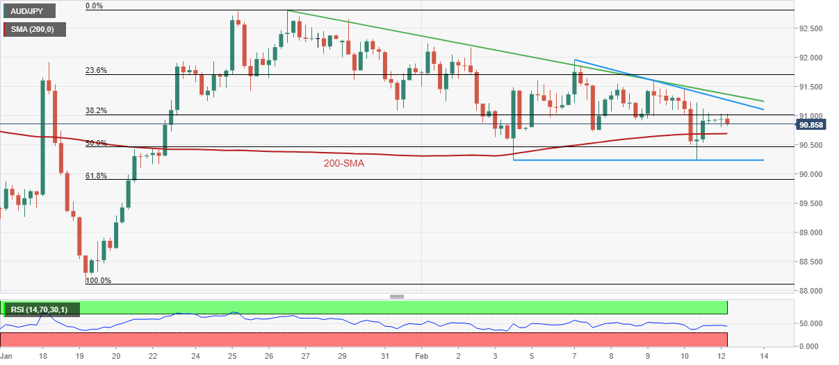 澳元/日元价格分析:构筑看涨三角形形态,处在91.00附近的200-SMA水平考验空头