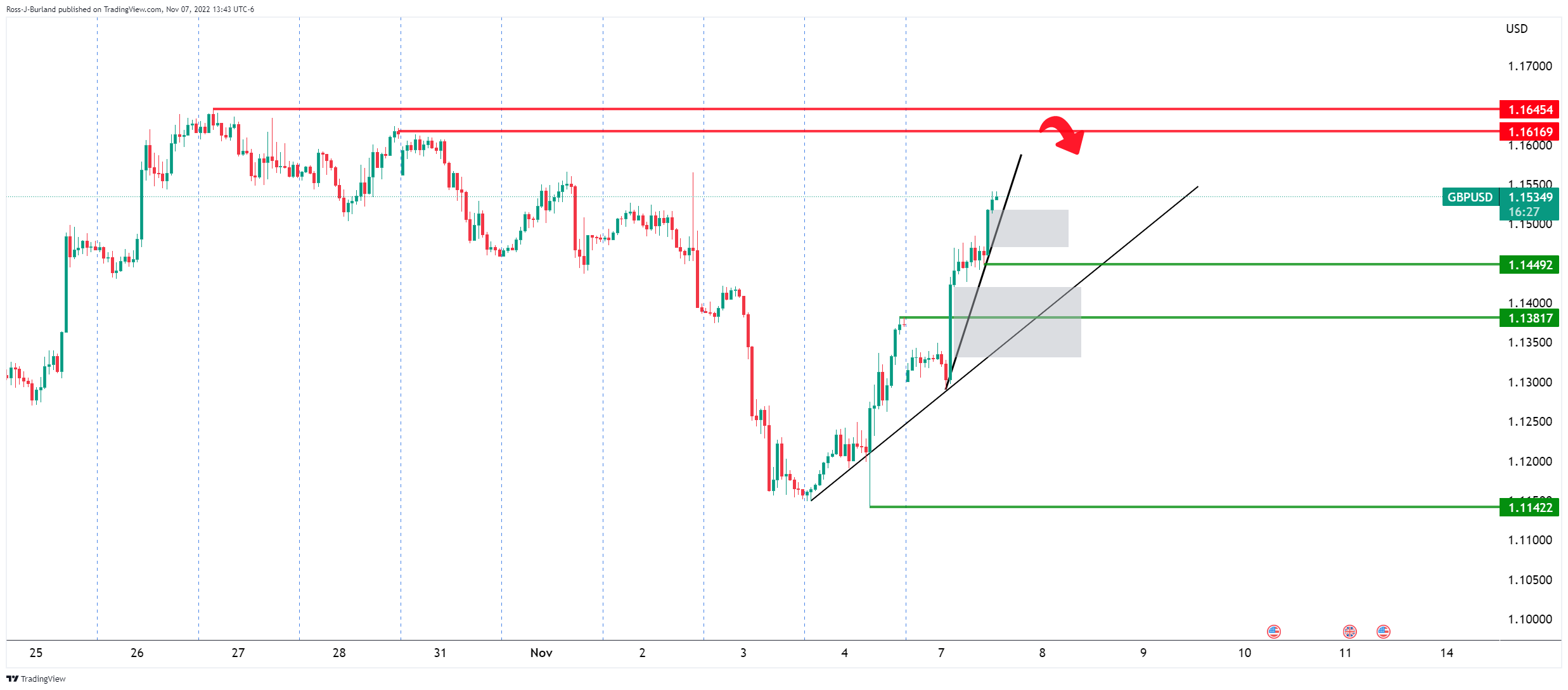英镑兑美元价格分析:多头走强英镑兑美元接近阻力,指向上周高位