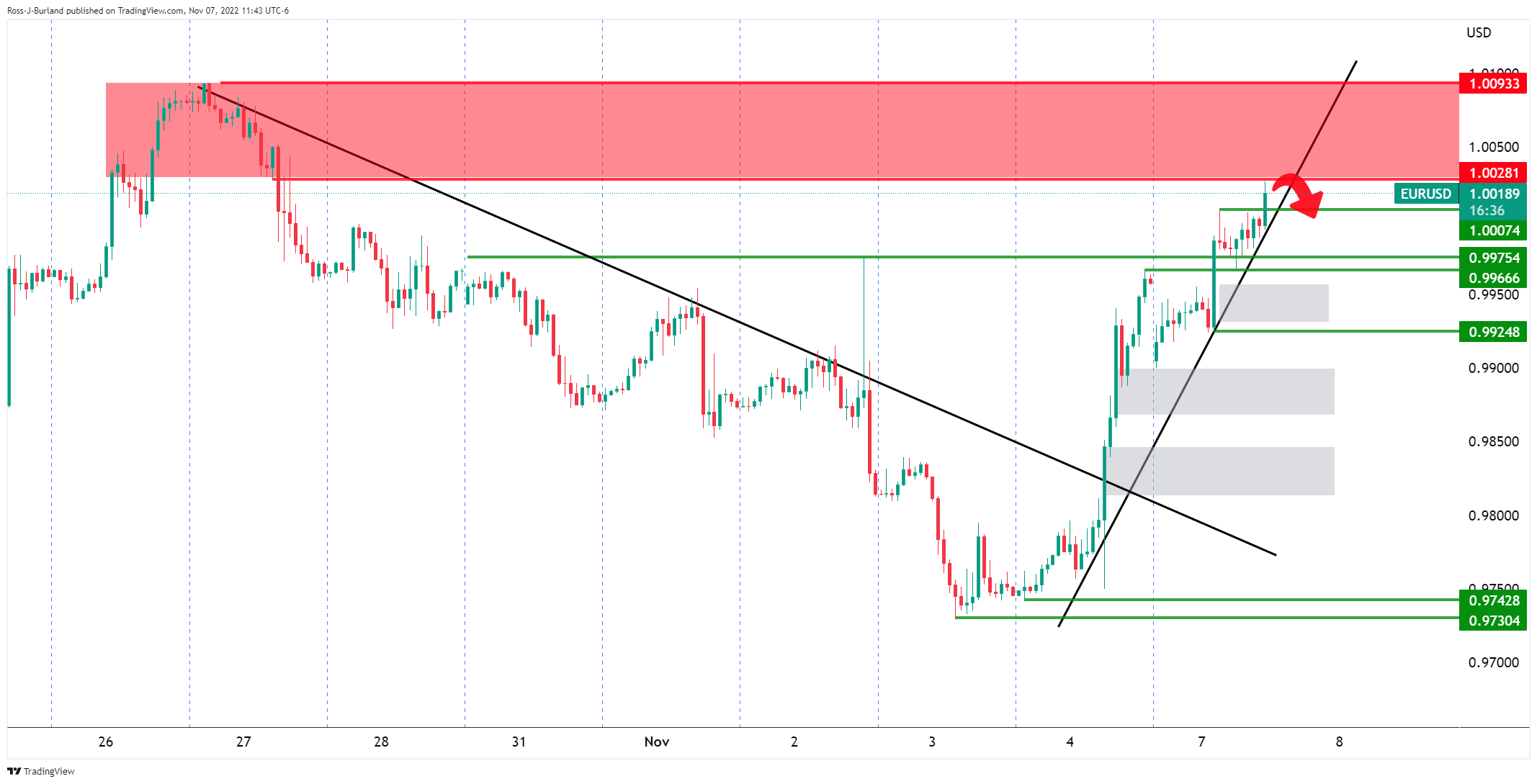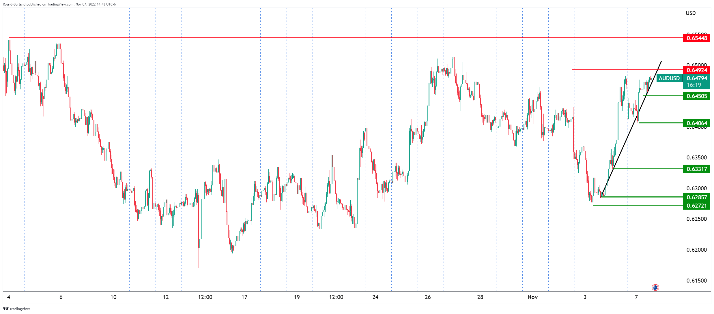 欧元兑美元继续走高,略高于平价。 由于美国国债收益率喜忧参半,美元仍处于守势。 欧元区Sentix指数11月升至-30.9。 围绕欧元的买入兴趣依然良好,这促使欧元兑美元在本周初重新测试平价区域。