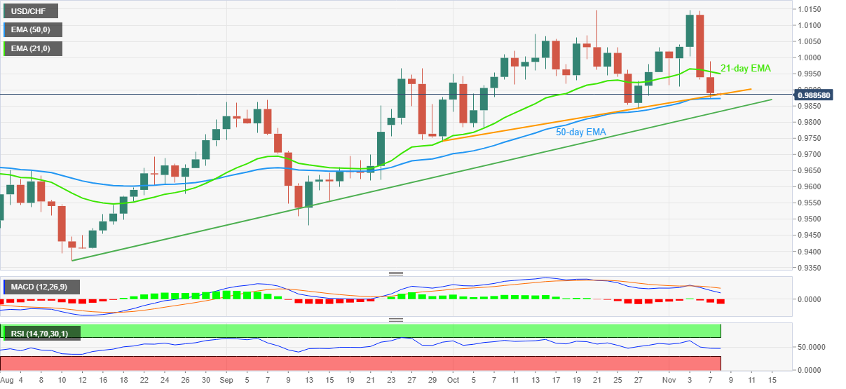 美元兑瑞郎价格分析:空头探测50日指数均线及五周支撑,遇阻0.9900水平