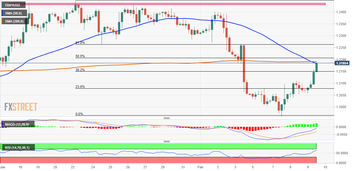 英镑/美元价格分析:刷新周顶部,关注1.2200附近的50%的斐波那契水平