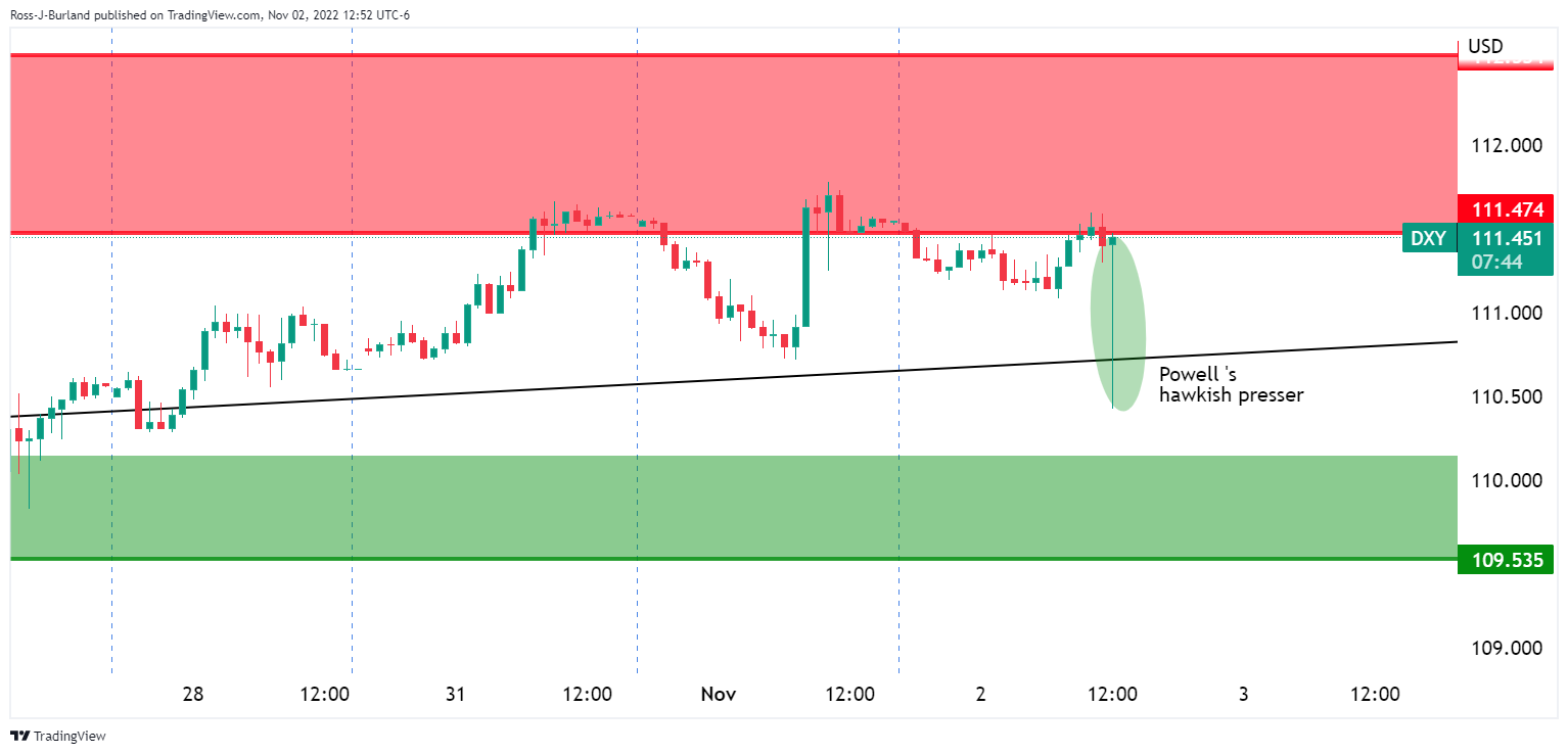 周三美联储决议后,风险市场震荡,美联储利率声明呈现鸽派,而美联储主席鲍威尔新闻发布会自始至终均呈现鹰派。 美联储主席鲍威尔发表的鹰派言论几乎让美元收复美联储利率声明后的全部跌幅。 英镑/美元小