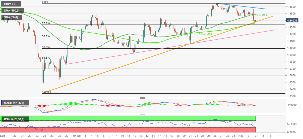 周四早盘,英镑/美元整理于一周低点1.1380附近,短线关键支撑趋势线对空头构成考验。 即便如此,MACD信号看跌,相对强弱指标下降且英镑/美元跌破50-SMA,对空头有利。同时利空英镑/美元的是相