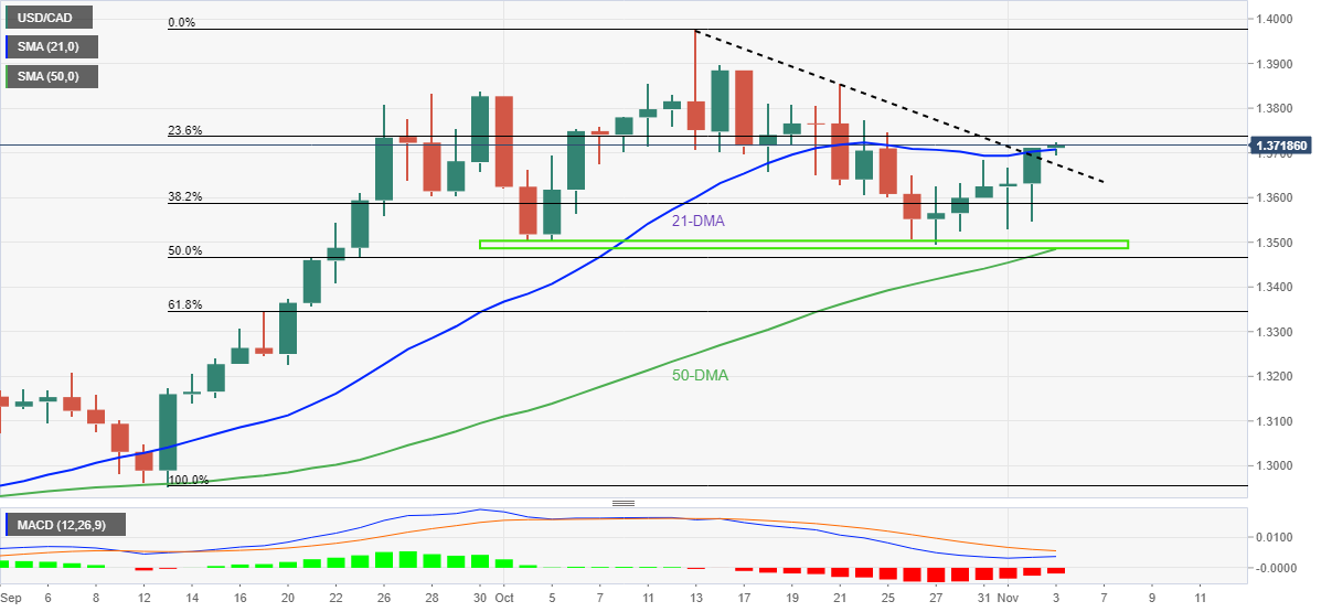 周四亚市,美元/加元刷新周线高位处在1.3720附近,美元/加元延续五日上涨势头。 在这期间,美元/加元验证突破10月13日以来下行阻力线(现在是支撑位)以及21日均线的理由。近期MACD看跌信号有纽元/美元自0.5800反弹,联储决议引发市场波动后纽元下跌前景完整,焦点处在非农