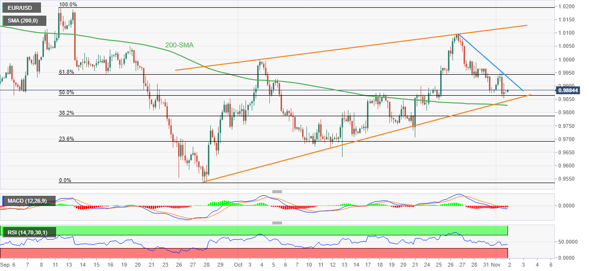 欧元/美元价格分析:处在上升楔形形态内,在0.9900附近考验空头,即便美联储决议前市场维持焦虑