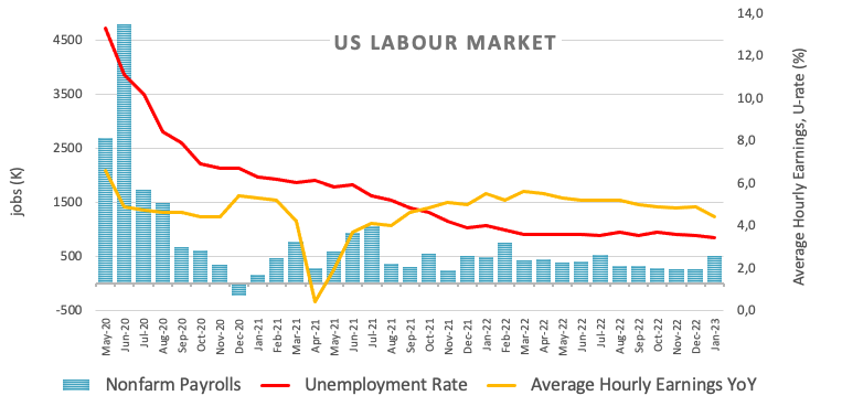 大部分乐观的美国就业细节导致美元/日元反弹约150点。 美国经济1月份新增51.7万个就业岗位,失业率降至3.4%。 风险基调趋弱,日本央行的鹰派预期可能为日元提供支撑,并限制美元/日元涨幅。 美元