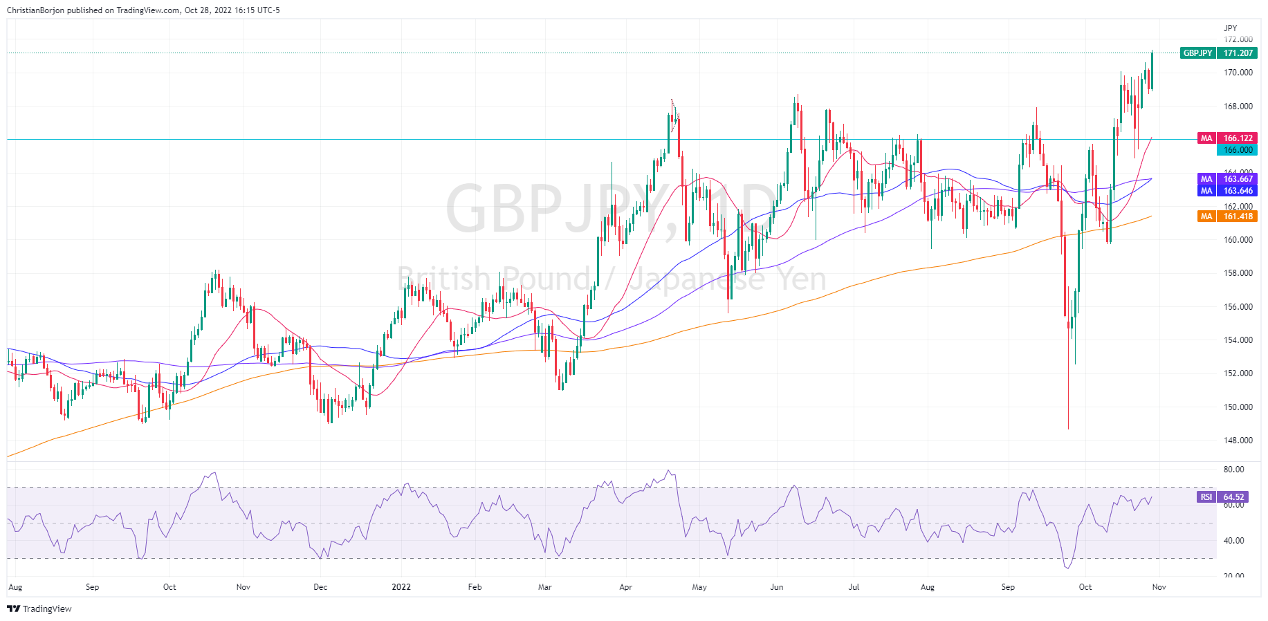 英镑/日元价格分析:交投于六周新高171.20附近,指向175.00水平