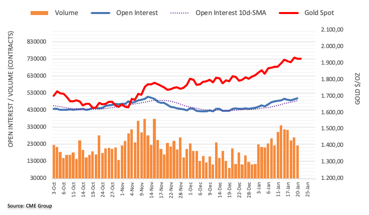 上周五,黄金期货市场的未平仓合约量连续第二个交易日增加,根据芝加哥商品交易所集团(CME Group)的初步数据,这一次增加了约0.54万份合约。相反,成交量逆转了之前的增长,减少了约4.86万份合约