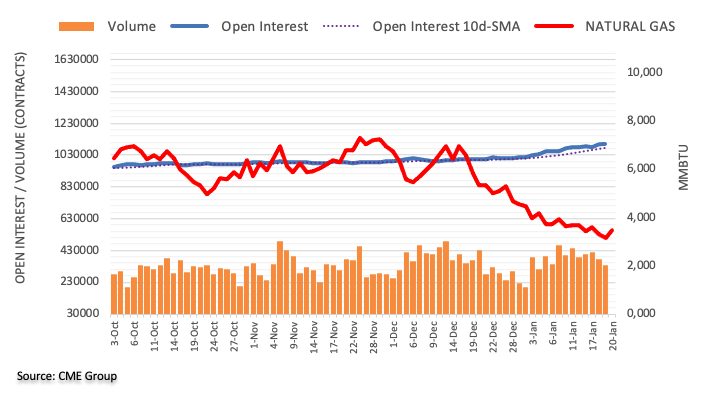 根据芝加哥商品交易所集团(CME Group)天然气期货市场的初步数据,上周五未平仓合约连续第二个交易日上升,这次增加了约1200份合约。另一方面,成交量连续第二天回落,现在减少了超过3.6万份合约。