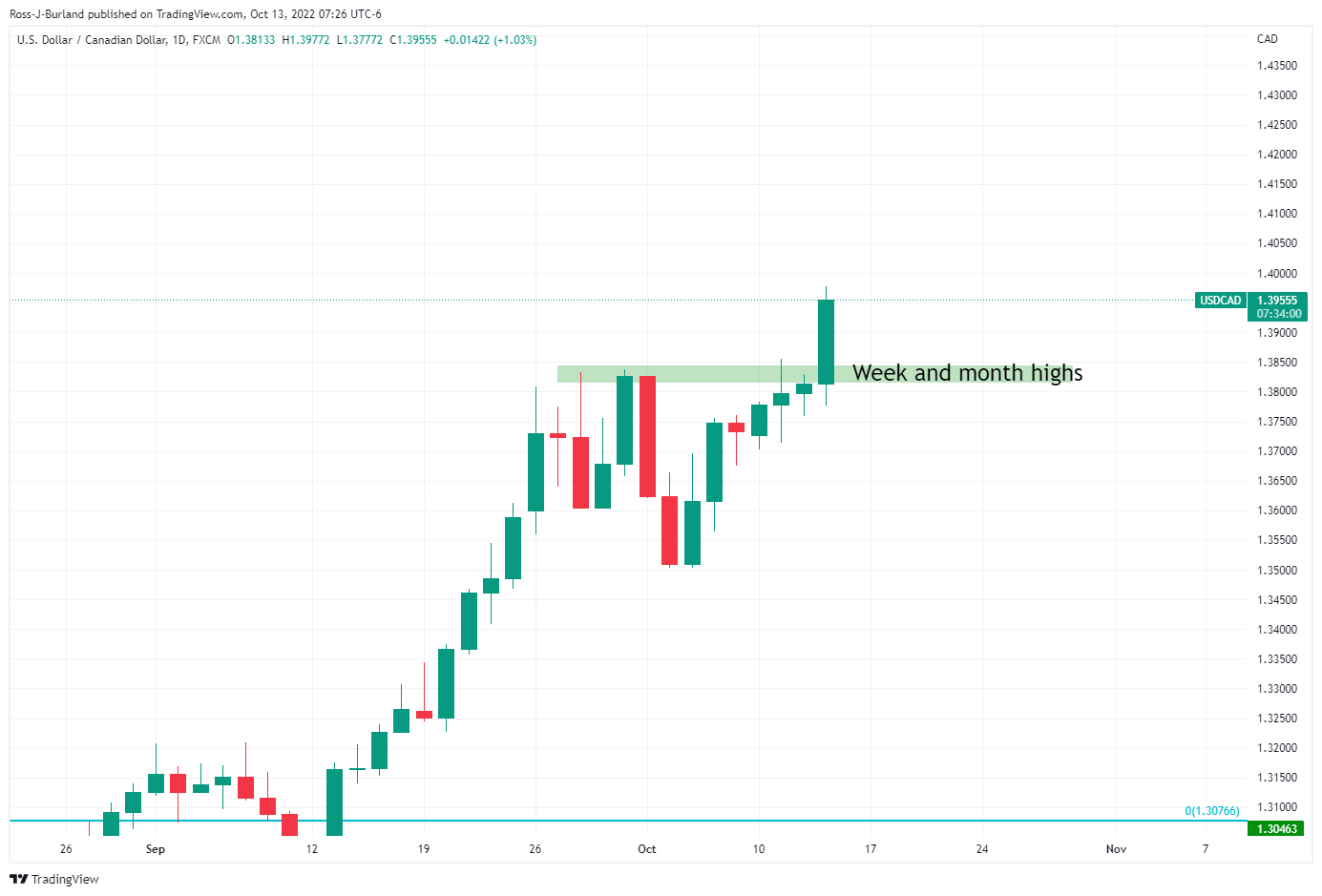 美元/加元多头突破关键的周和月高点。 美国CPI数据火热,导致股市走低。 美元兑加元上扬至1.3977,因备受期待的消费者价格指数报告中公布的美国通胀数据强于预期。该货币对从1.3777的低点反弹,