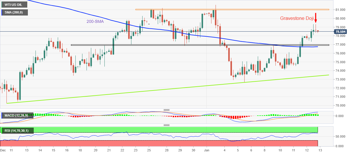 WTI原油价格分析:看跌墓碑十字星试探78.50美元附近的多头