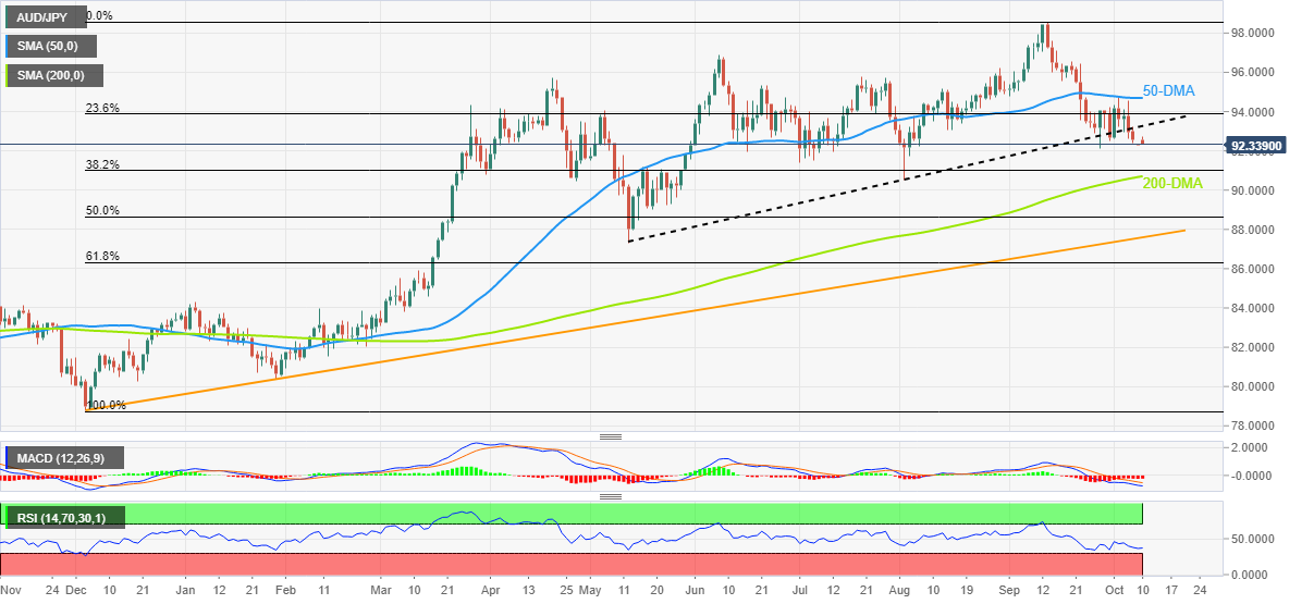 澳元/日元价格分析:存在进一步下跌空间,接近92.00水平