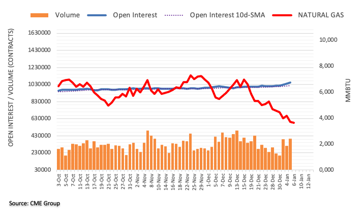 芝加哥商品交易所集团(CME Group)周四公布的天然气期货市场预估数据显示,未平仓合约数量连续第6个交易日增加,这一次增加了约1.38万份。成交量紧随其后,增加了约8.47万份合约,同时延续了最近