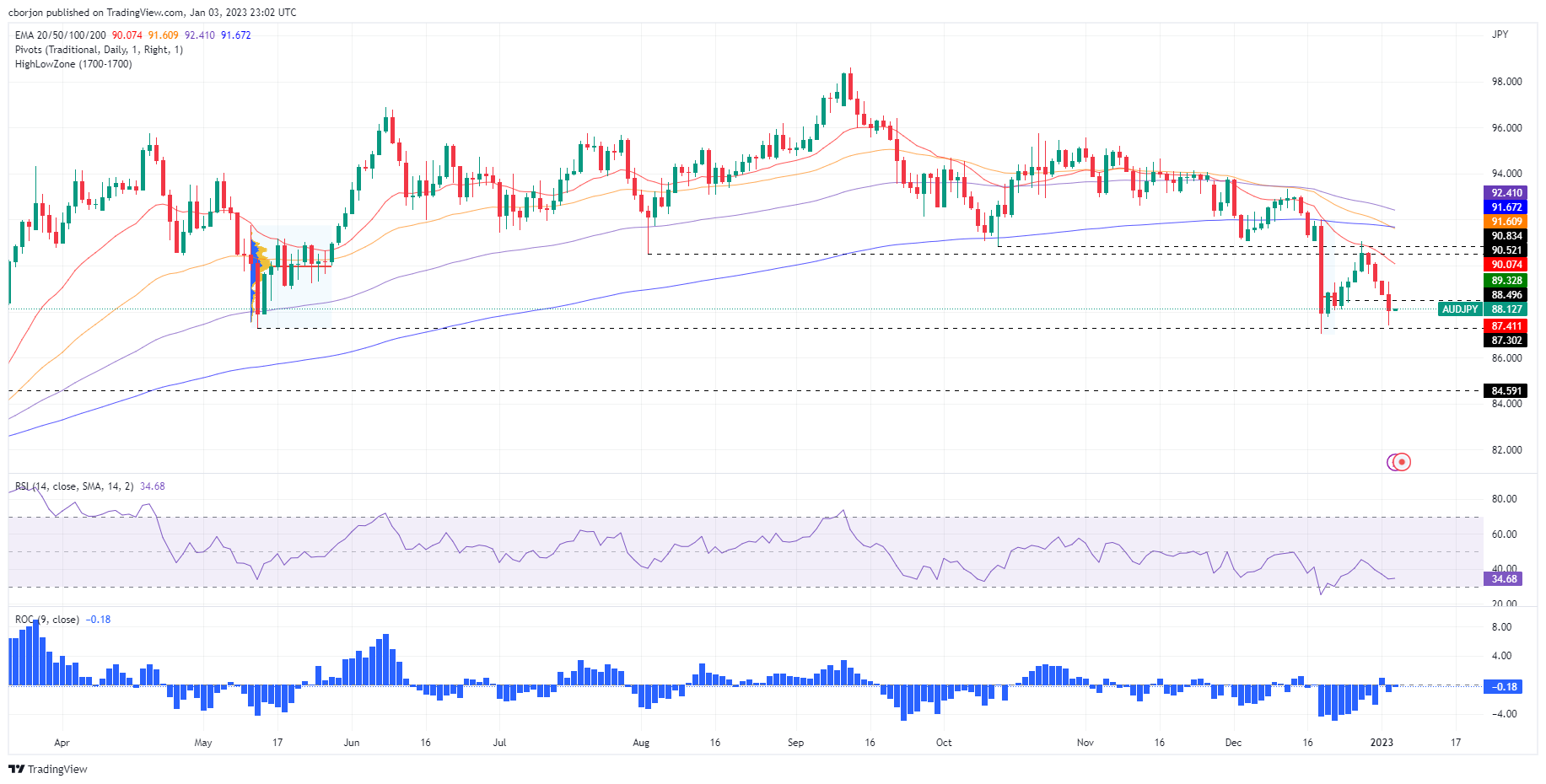 澳元/日元价格分析:继触及周线低位87.40后,整理于88.00附近